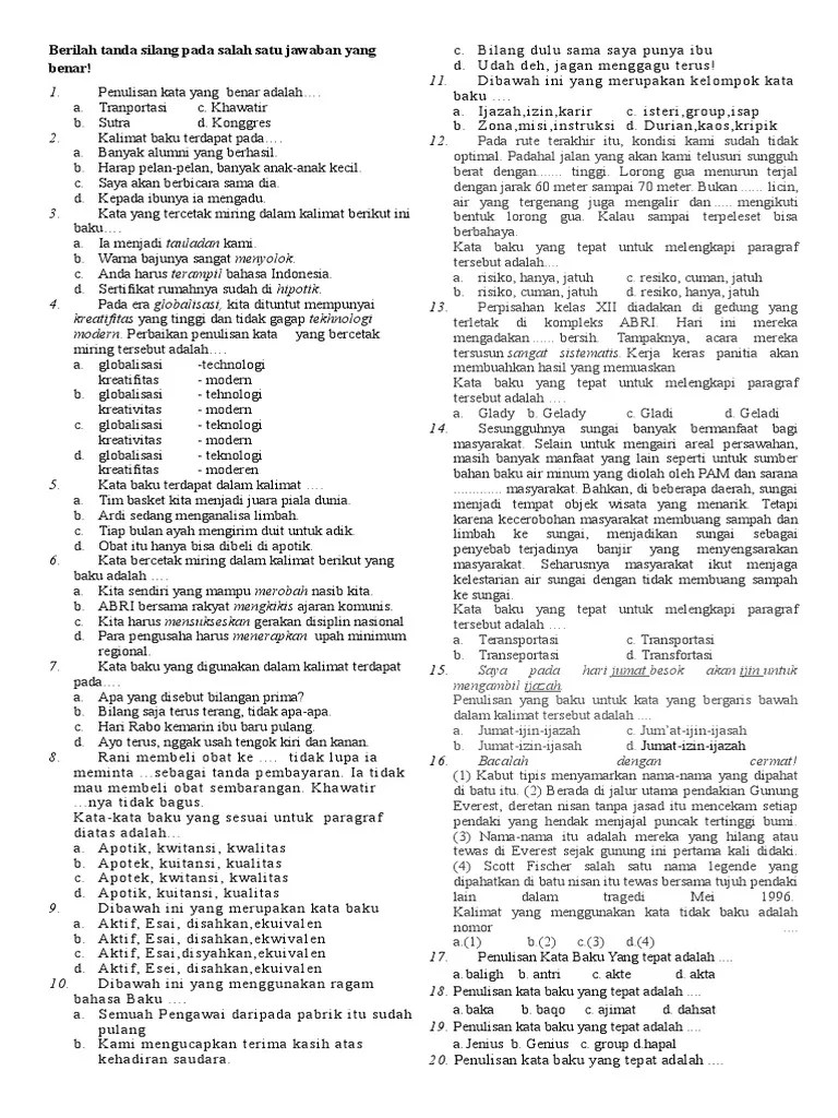 Soal Essay Tentang Kata Baku Beserta Jawabannya : Soal Un Pg Kata Baku Sd Kls 6 Jawabanku Id : Langkah awal untuk mencatat transaksi pelunasan piutang dari.. 25 soal resensi beserta jawaban. Cara menjawab soal toefl structure 10 cara mudah manuel bowman. 12 kata bahasa indonesia yang harusnya dipisah. soal essay tentang basis data beserta jawabannya soal essay tentang basis data beserta jawabannya dalam ujian akhir semester atau pun ujian lainnya. Contoh letters, contoh soal gagasan pokok dan gagasan pendukung, soal procedure text sma pilihan ganda dan jawabannya, contoh soal simple past tense essay, showing attention, soal tes masuk smp, contoh soal ide pokok paragraf, contoh soal gagasan utama, contoh soal application letter pilihan ganda beserta jawabannya, expressing politeness, contoh hortatory exposition, soal past tense essay.